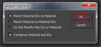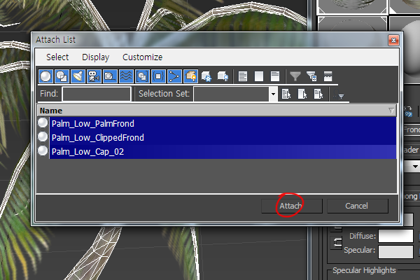 5)나머지 세개의 오브젝트를 선택하고 attach를 선택합니다.