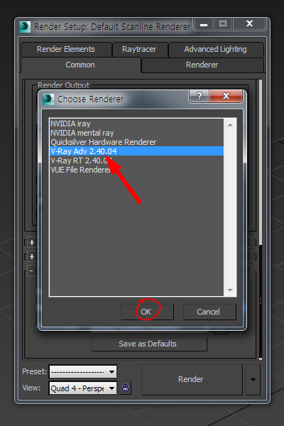 1)렌더 설정에서 브이레이 렌더러를 선택하고 프록시 데이터를 저장할 3D 오브젝트를 준비합니다.