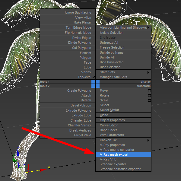 13)나무 모델 오브젝트를 선택하고 우클릭 메뉴에서 V-Ray mesh export를 선택합니다.