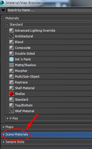 9)Material/Map browser에서 scene materials로 이동합니다.