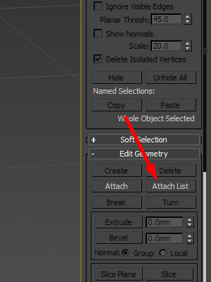 5)나머지 세개의 오브젝트를 선택하고 attach를 선택합니다.