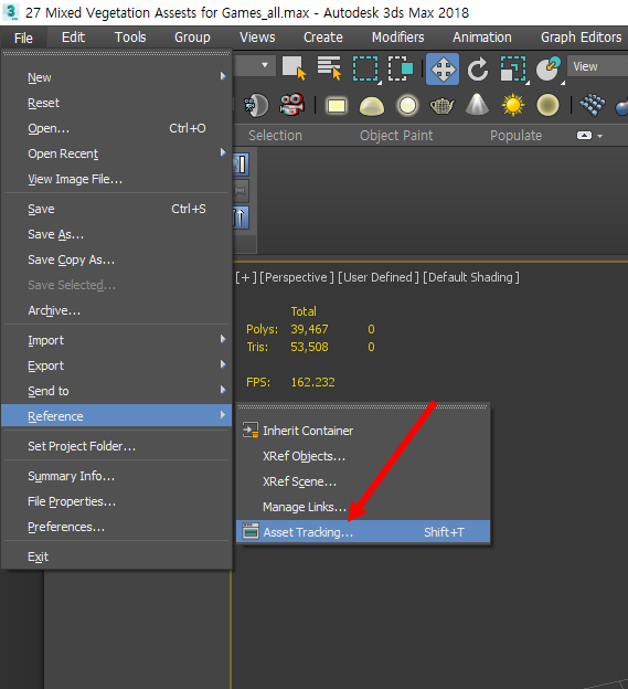 2)상단의 file 메뉴에서 reference의 asset tracking로 이동합니다.