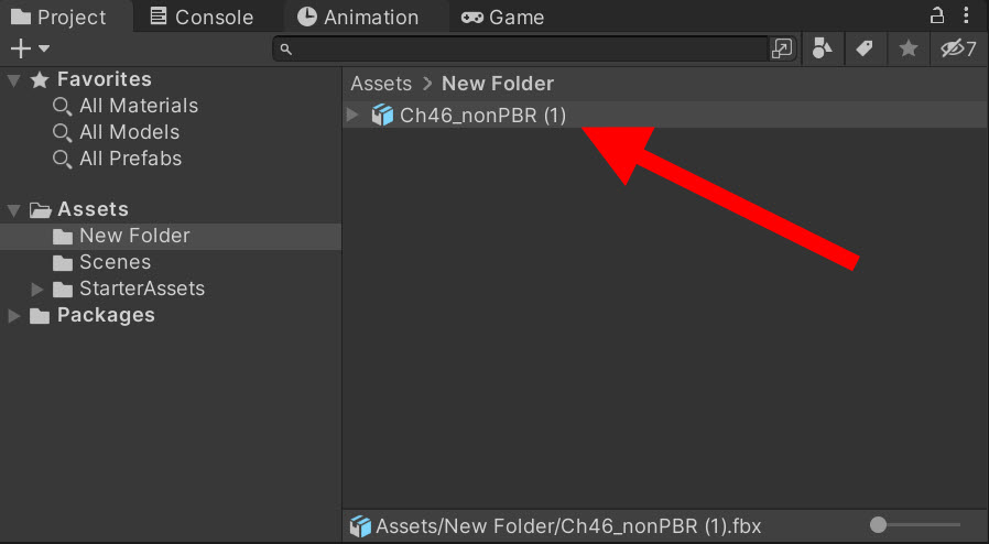 3)모델을 유니티 프로젝트에서 가져오기합니다(import)