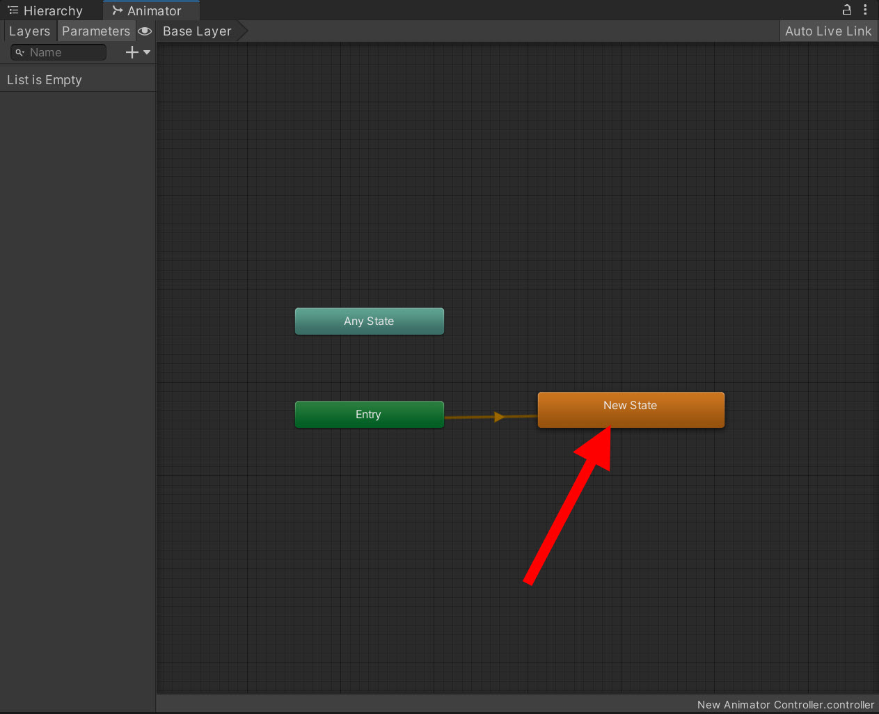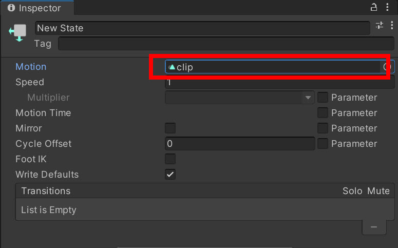 8)새로운 상태(state)를 생성하고 두번째 캐릭터의 애니메이션 클립을 설정합니다.