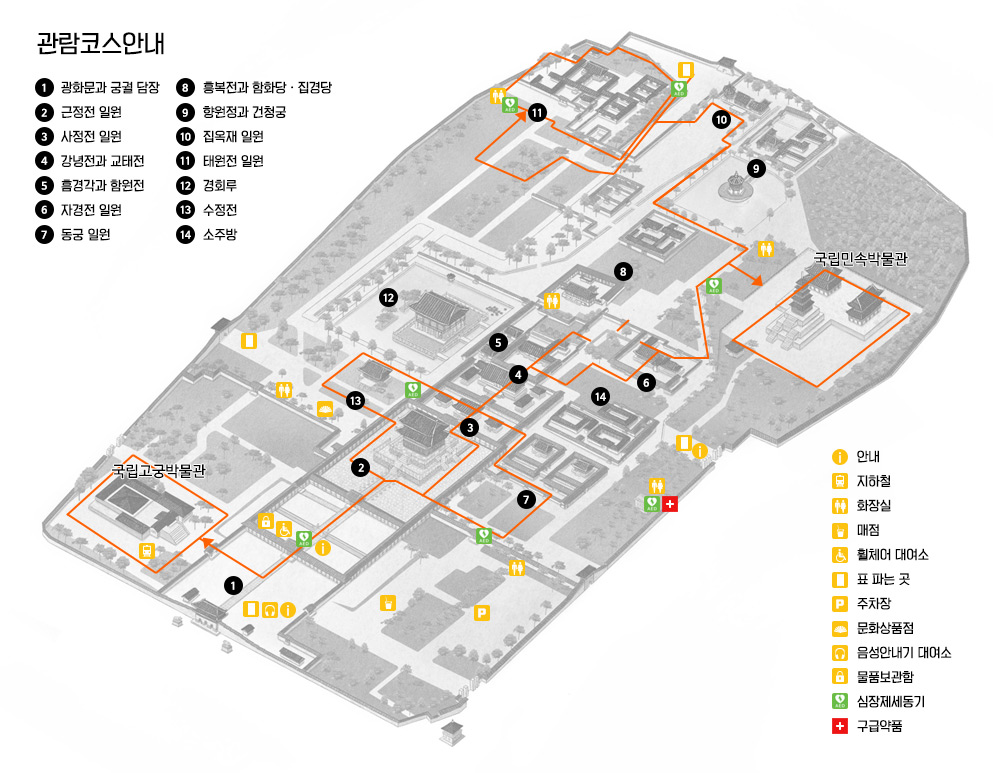 경복궁지도, 관람코스안내(문화재청 궁능유적본부 경복궁 관리소)