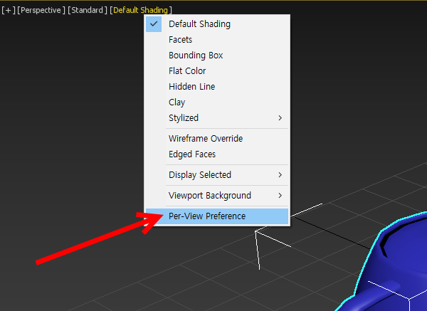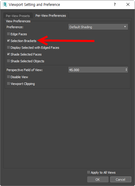 2)오브젝트의 브라켓(bracket) 표시 설정을 하려면 해당 뷰포트의 per-view preference로 이동합니다.