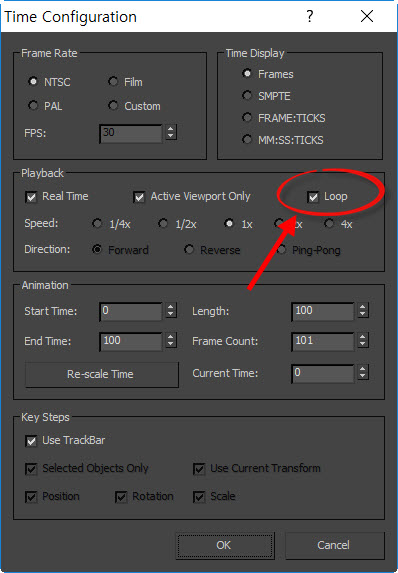 3D 맥스 타임라인에서 애니메이션 반복 재생하기(loop)