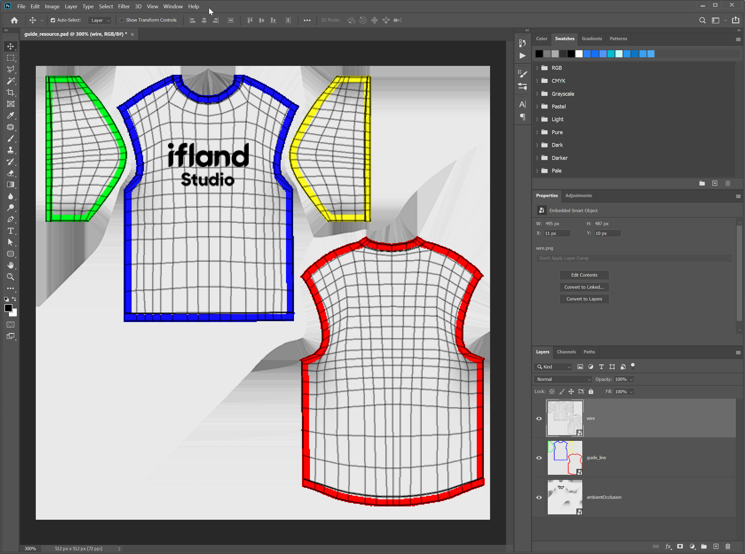 11)가이드라인 및 와이어 레이어를 확인할수있습니다.