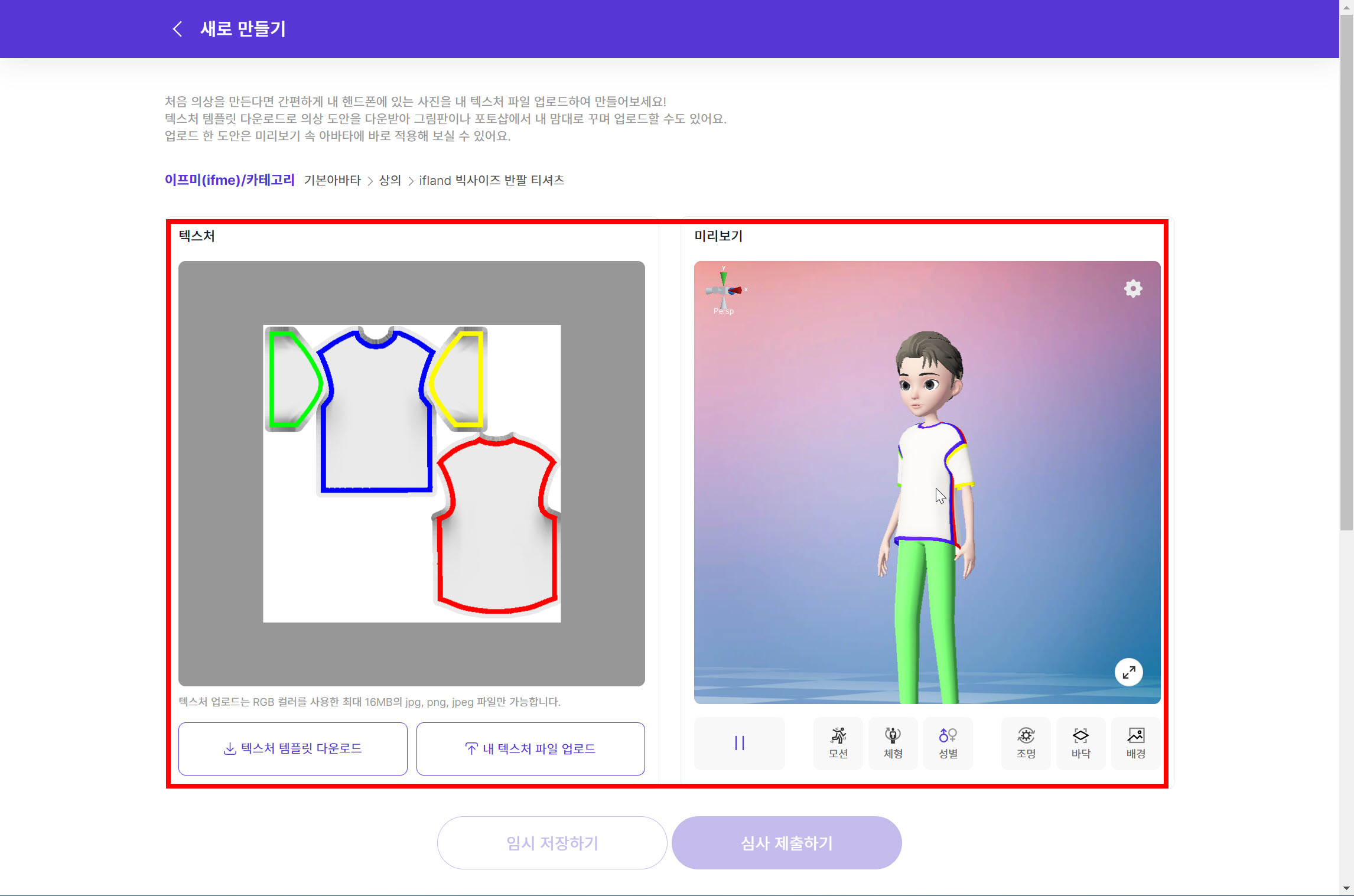 이프랜드 스튜디오에서 제공하는 아이템 제작 템플릿을 사용하여 이프랜드 크리에이터는 직접 디자인한 나만의 패션 아이템 및 작품을 손쉽게 만들어 업로드하고 공개할수있습니다.