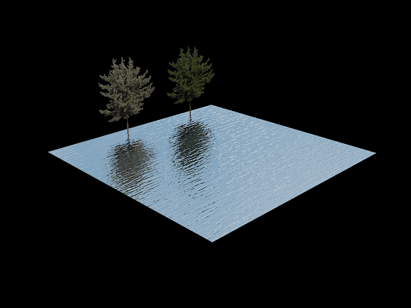 7)렌더링하면 plane 오브젝트의 표면에서 물결(wave)을 표현하며 주변환경을 반사하는것을 확인할수있습니다.