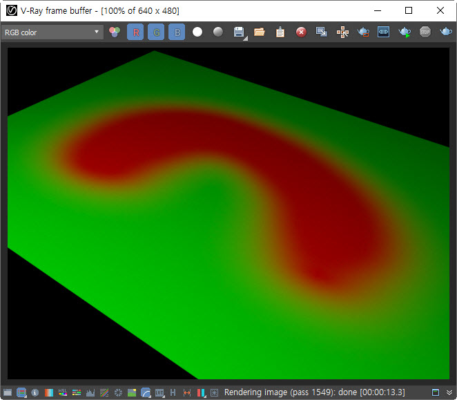 4)렌더링하면 두가지 재질이 혼합된것을 확인할수있습니다(VRayBlendMtl)