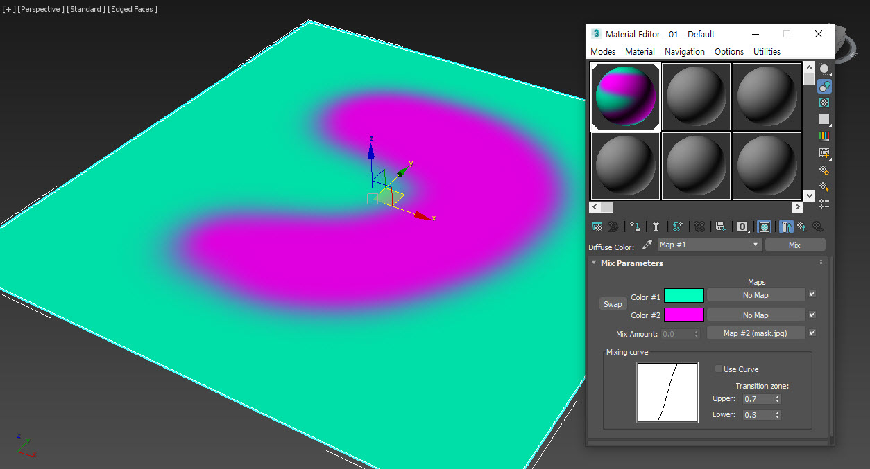 5)mix amount의 흑백 이미지 맵을 사용하여 두가지 색상을 혼합한것을 확인할수있습니다.