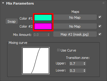 5)mix amount의 흑백 이미지 맵을 사용하여 두가지 색상을 혼합한것을 확인할수있습니다.