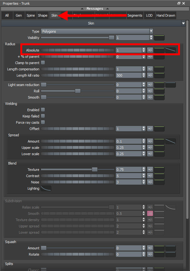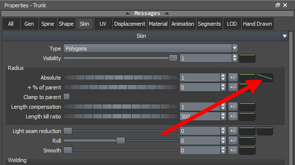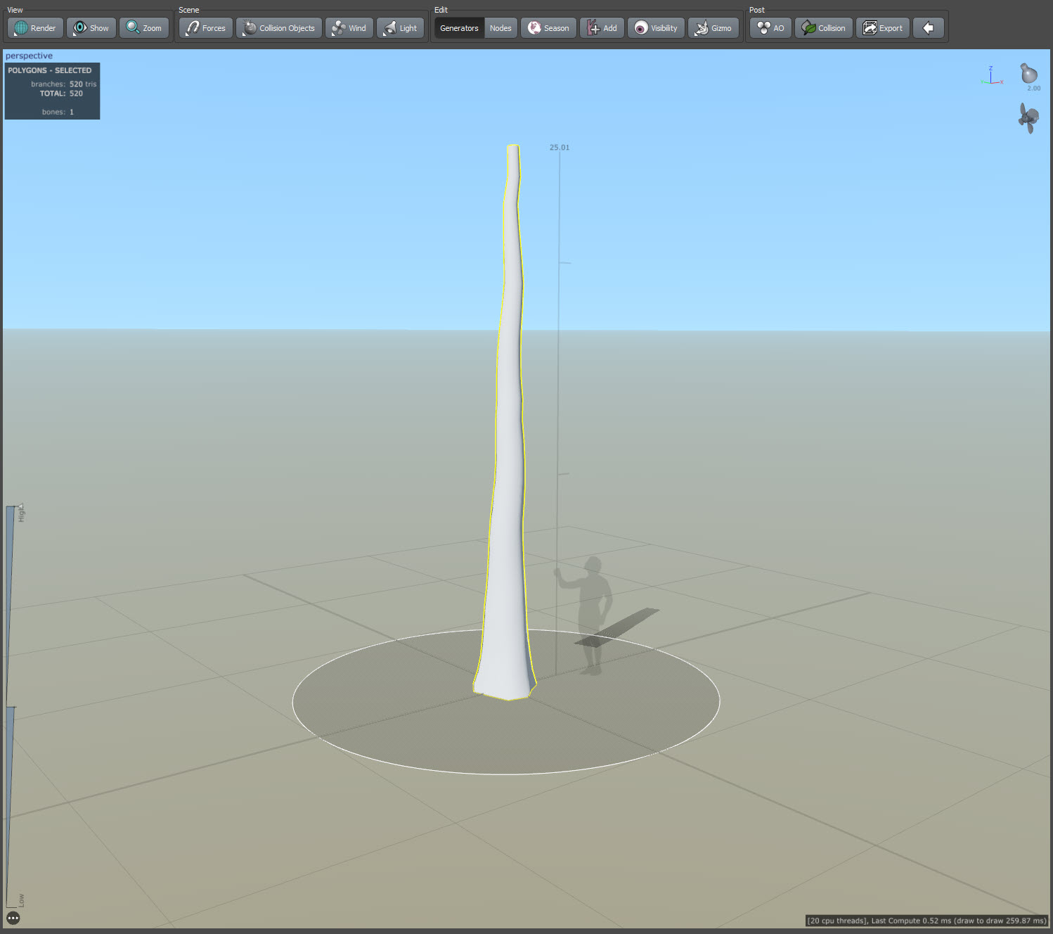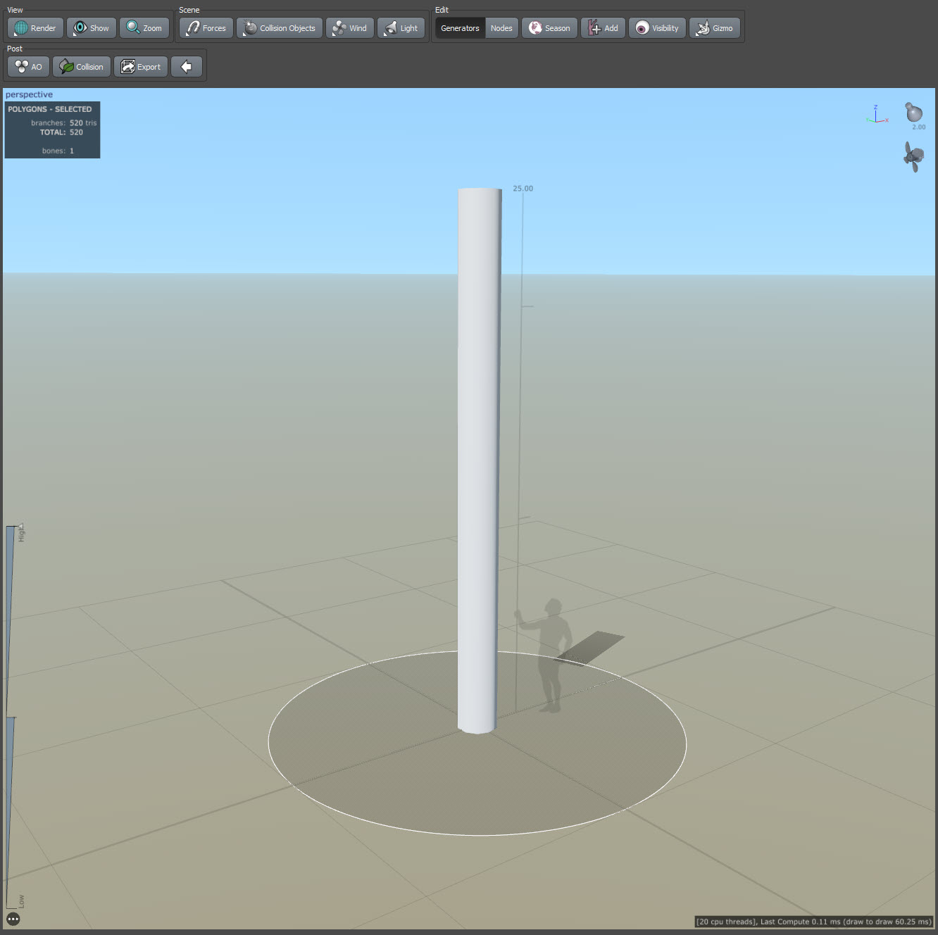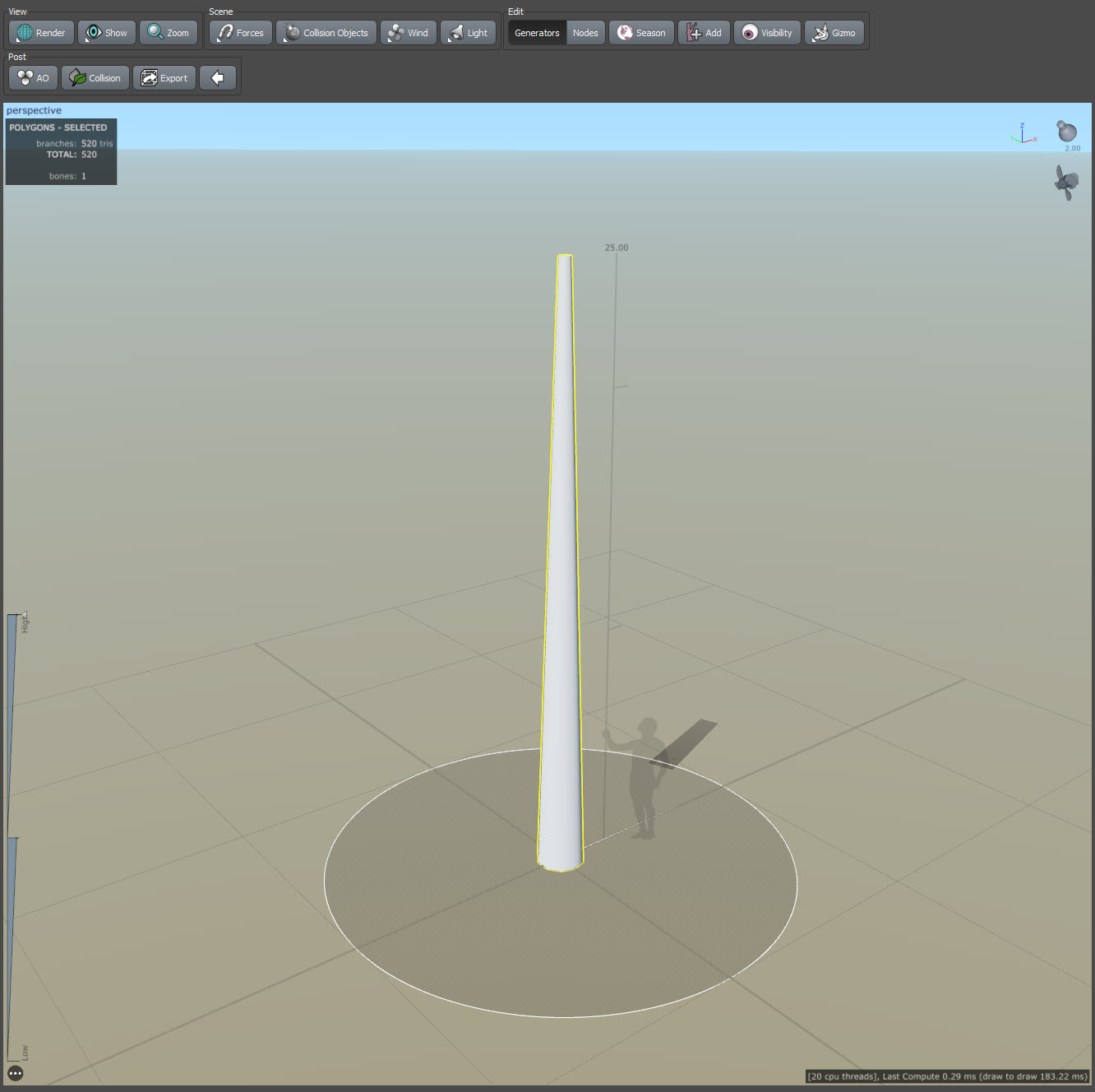 스피드트리(speedtree)에서 나무 줄기(trunk)의 직경 및 반지름 설정하기