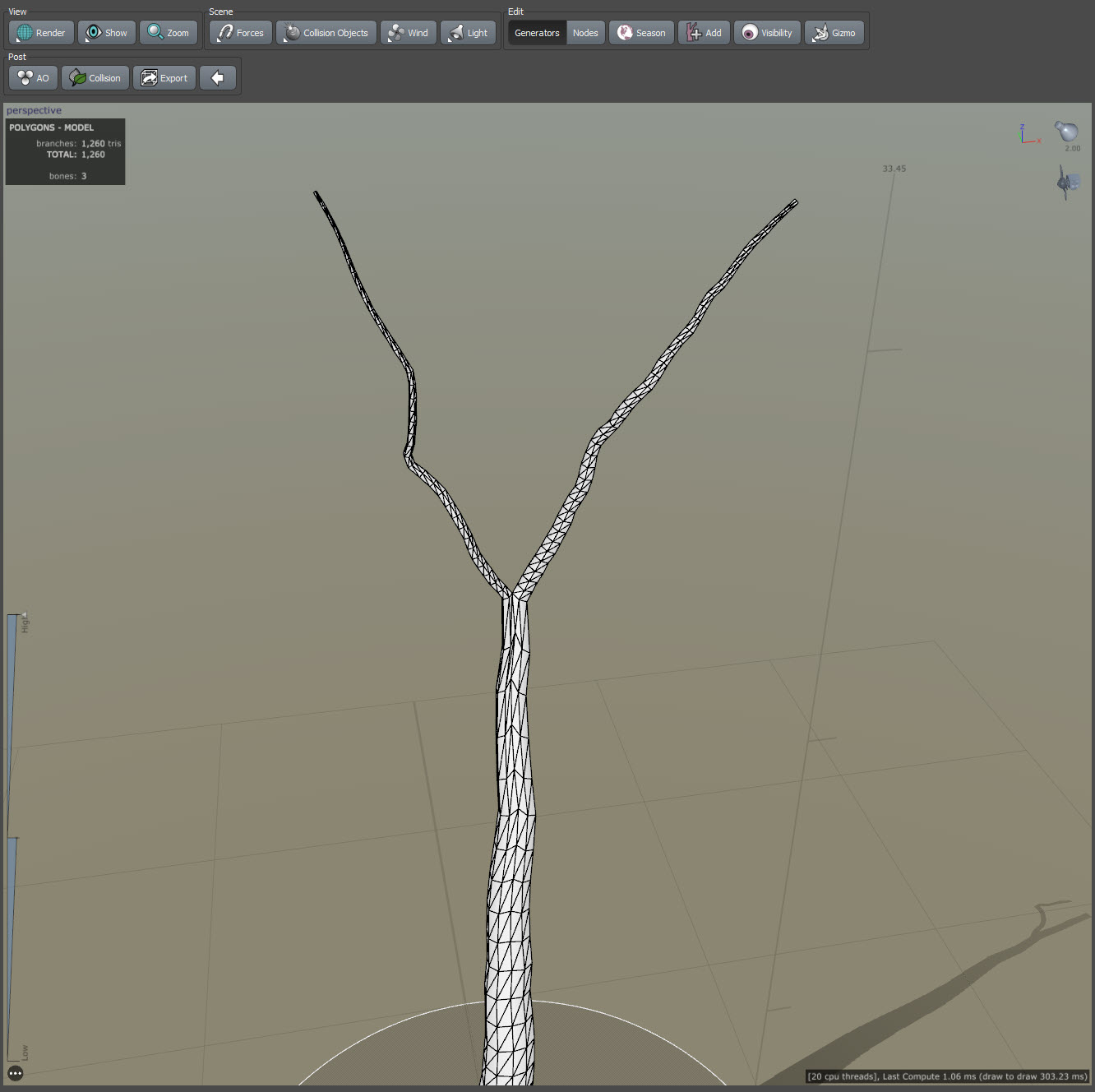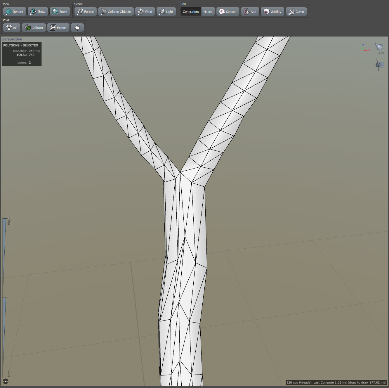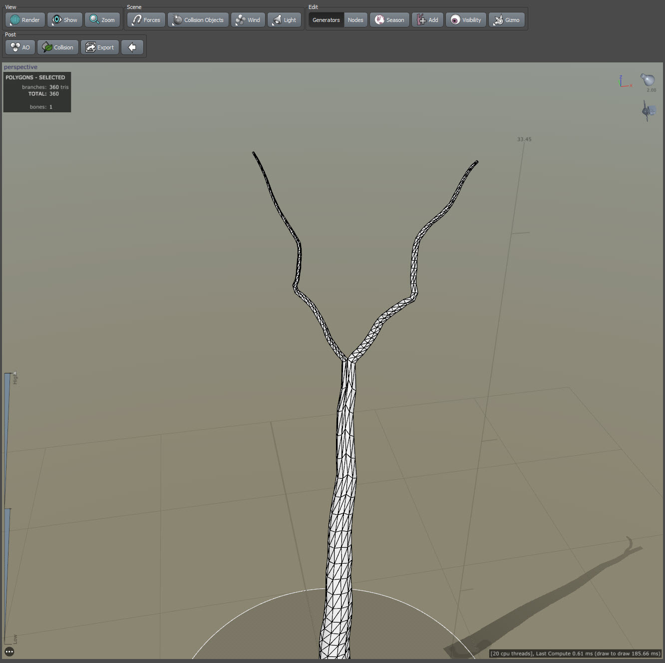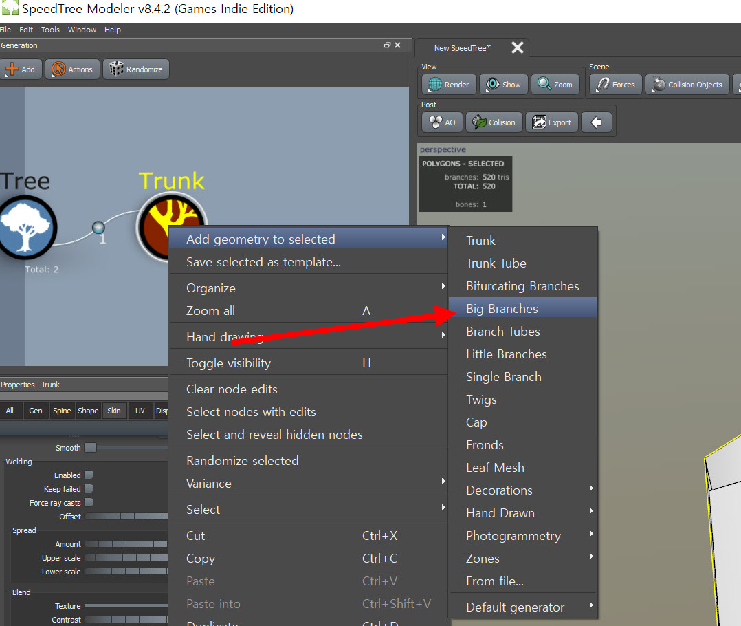 스피드트리(speedtree)에서 줄기 또는 가지의 갈래 생성하기