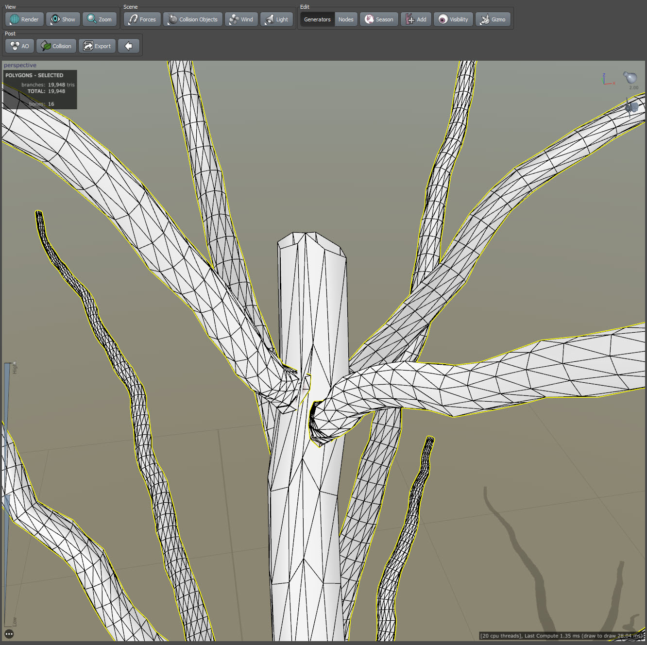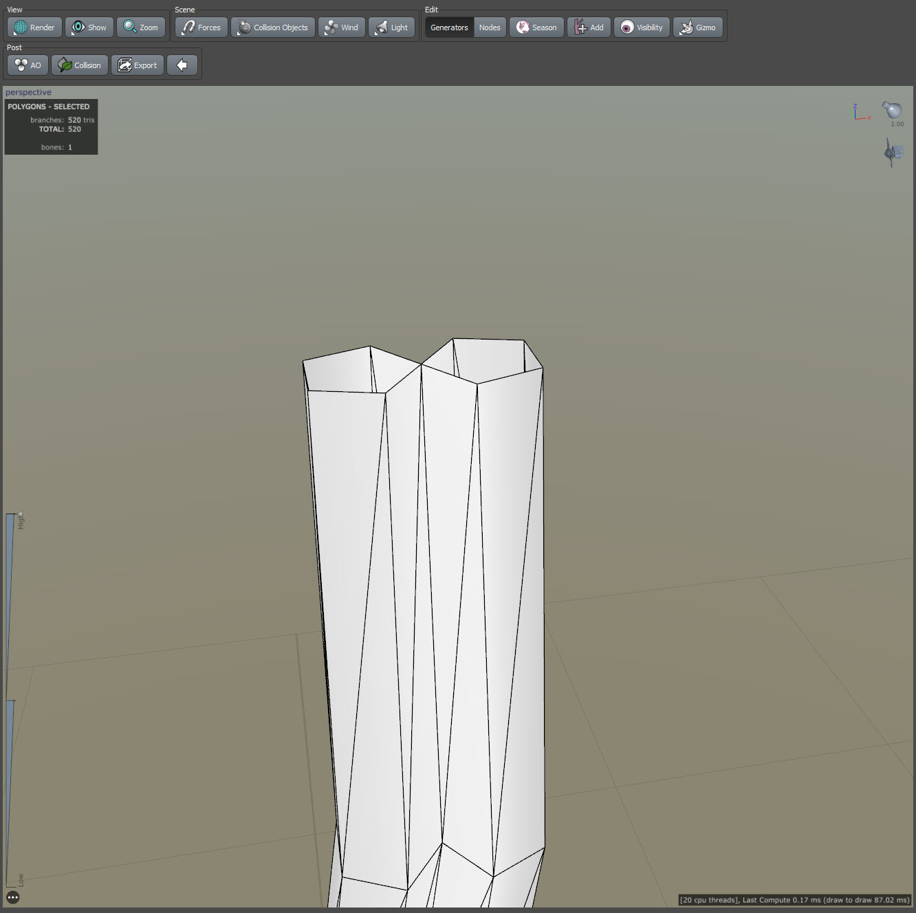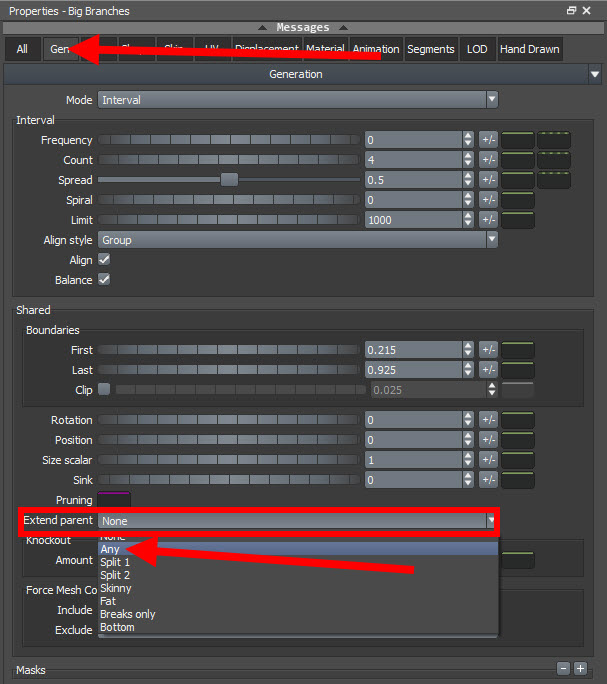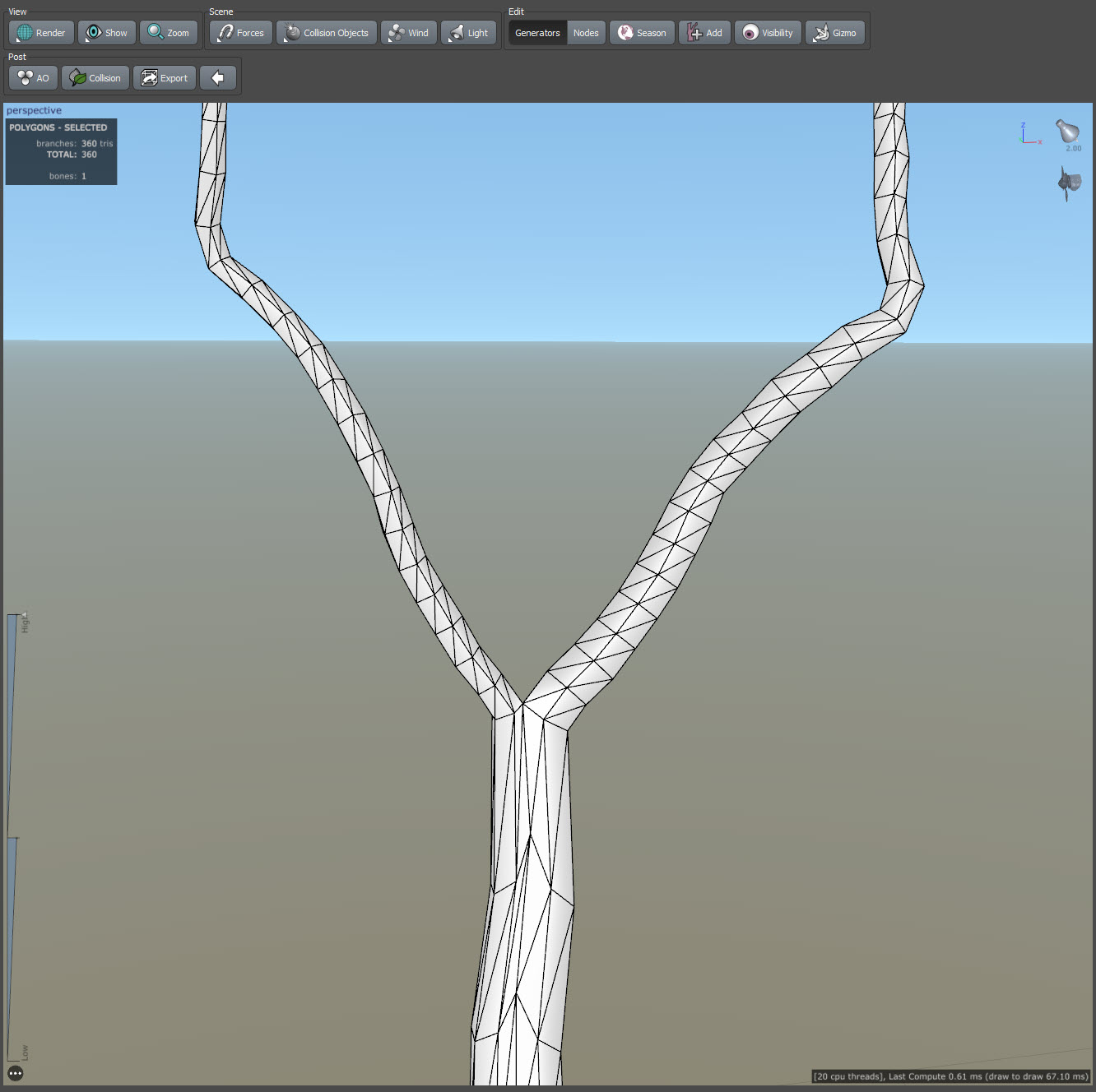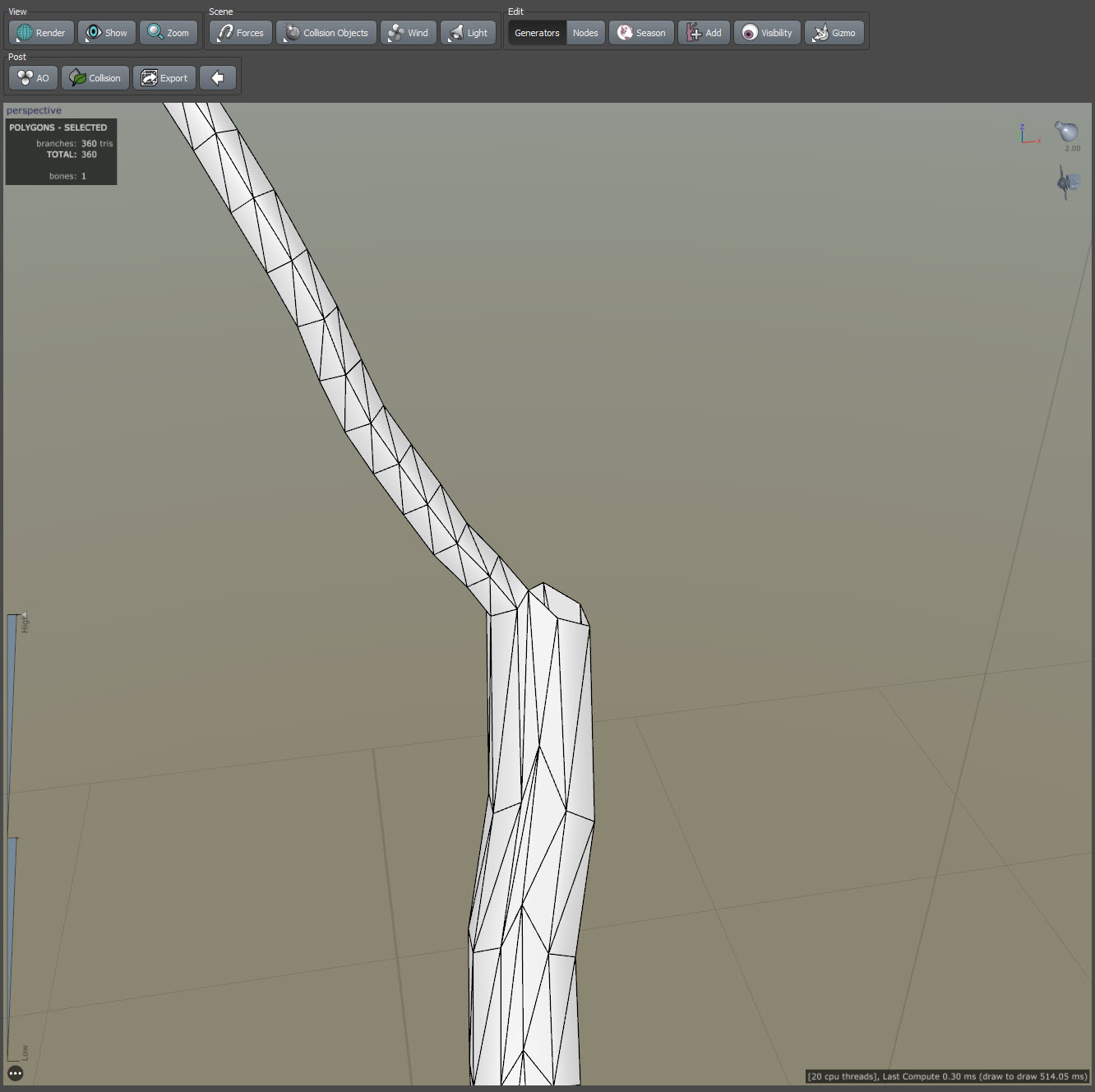 스피드트리(speedtree)에서 줄기 또는 가지의 갈래 생성하기