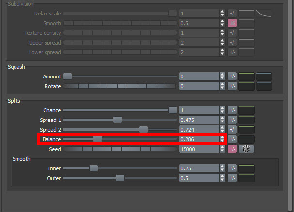 6)balance의 수치를 조절하여 갈래의 균형을 설정합니다.