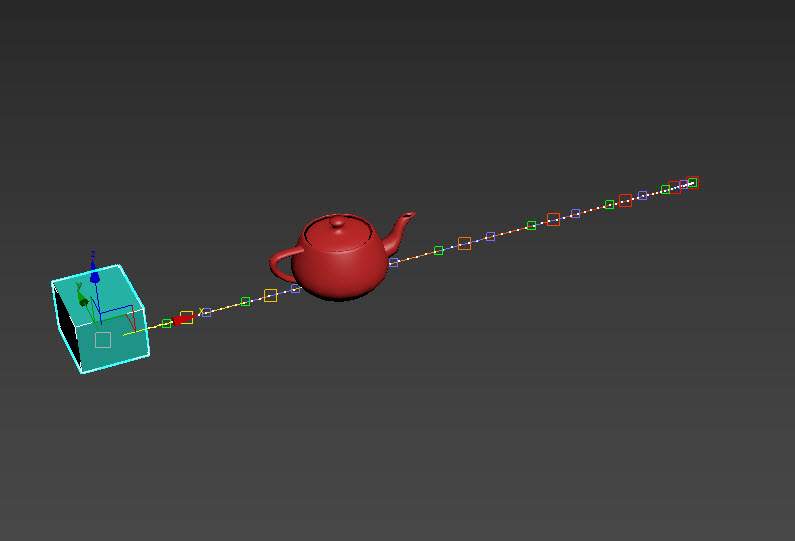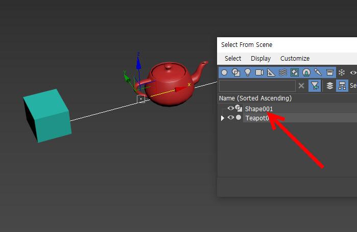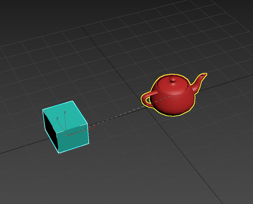 2)Select And Link 도구를 사용하여 box 오브젝트를 teapot 오브젝트에 링크합니다.