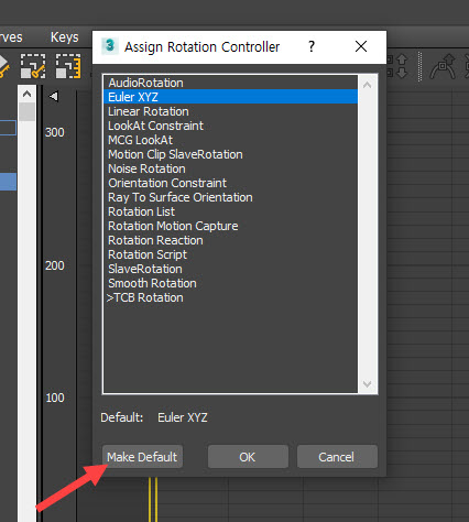 5)Euler XYZ를 선택하고 확인합니다. 또는 make default를 클릭하면 기본값인 euler XYZ로 변경합니다.