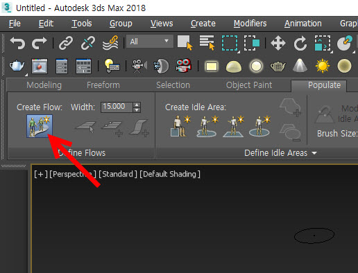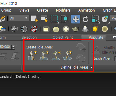 8)define idle areas에서 idle 인구를 생성할수있습니다. idle area 유형을 선택하고 뷰포트에서 클릭하면 해당 유형의 idle 인구를 생성하며 populate를 클릭해서 씬의 시뮬레이션을 업데이트합니다.