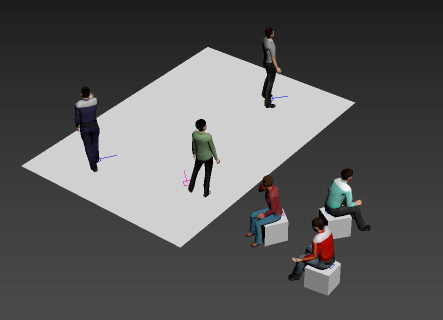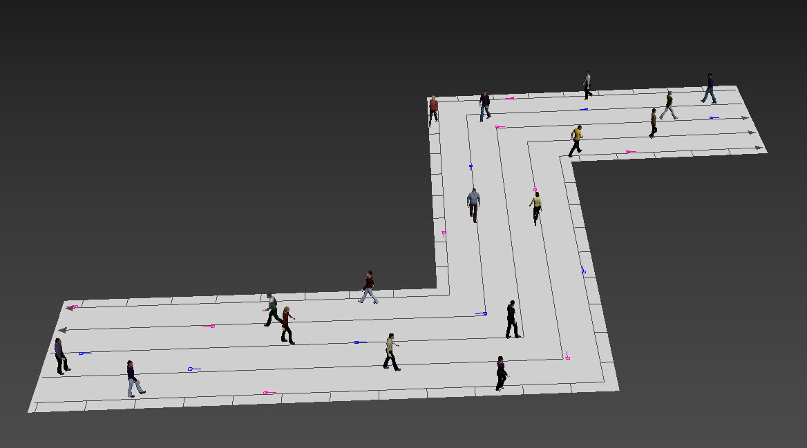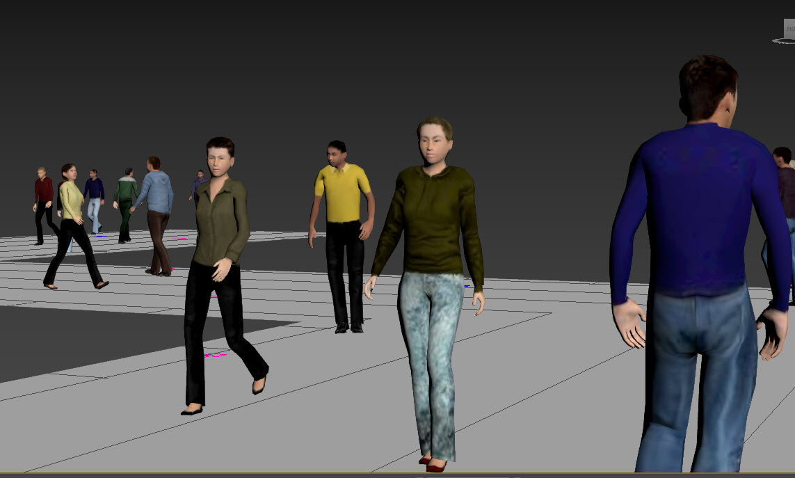 3D 맥스에서 populate tool를 이용한 인구 시뮬레이션(걷기, 달리기, idle)