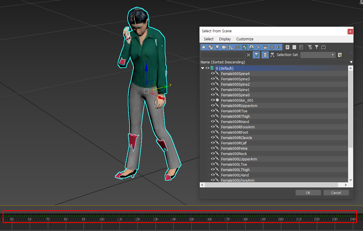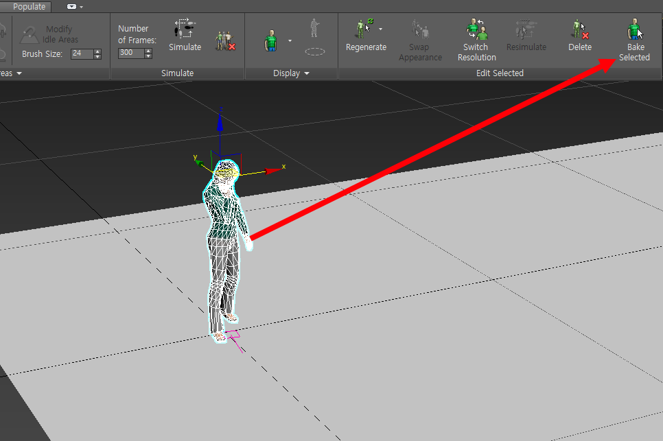 3D 맥스 populate tool에서 사람 모델 베이크하기(bake selected)