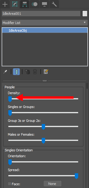 2)idle 오브젝트의 속성에서 density 수치를 낮추어 한명의 사람으로 설정합니다.