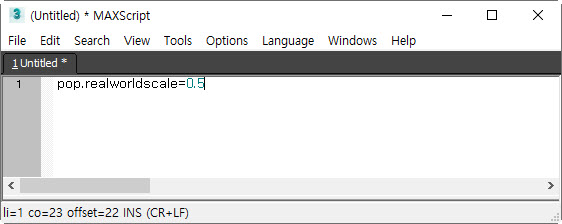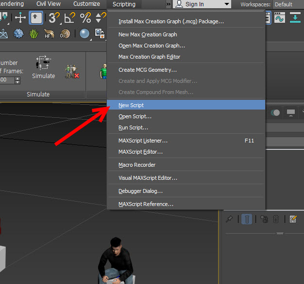 2)시뮬레이션되는 모델의 스케일은 일반적인 방법으로 변경할수없습니다. 상단의 scripting 메뉴에서 new script로 이동합니다.