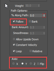 7)follow에 체크하고 axis의 축을 설정합니다.