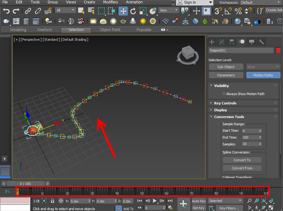 3D 맥스에서 오브젝트의 동선(motion path)을 스플라인으로 생성하기