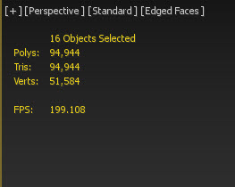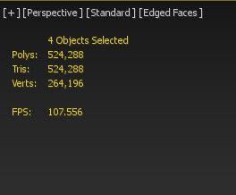 7)모델에 ProOptimizer 수정자를 사용하기 이전과 이후 폴리곤 개수(polys, tris)의 차이를 확인할수있습니다.