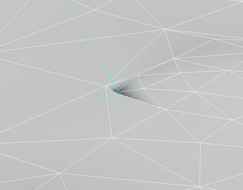 11)위 방법으로 해결되지 않으면 모델에서 해당하는 부분의 버텍스를 선택 및 이동시켜서 수정합니다. 또는 paint deformation의 relax brush를 이용하여 수정합니다.