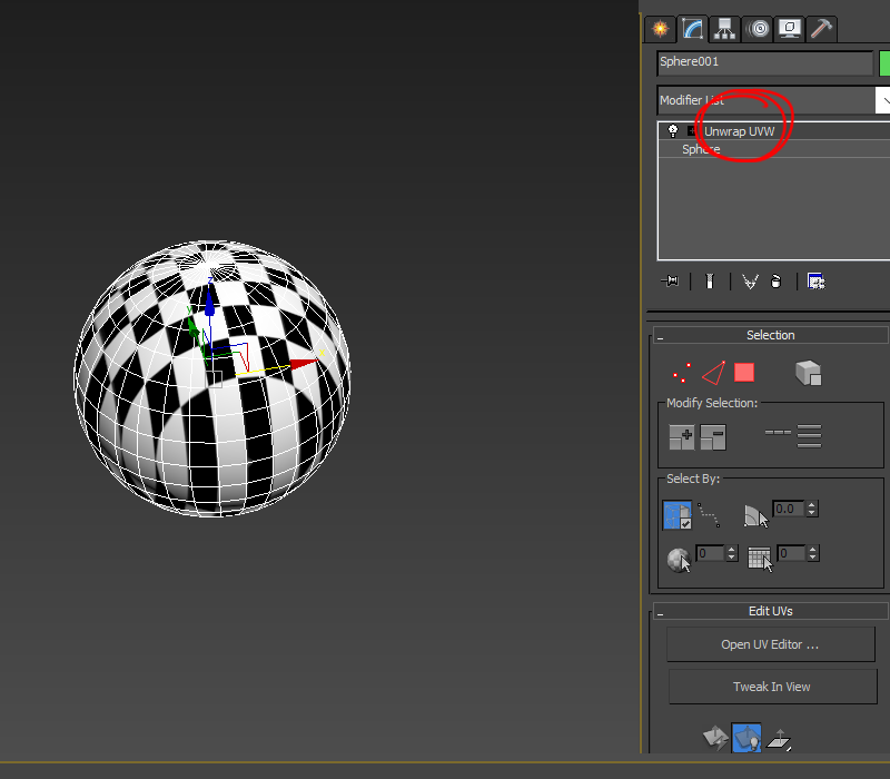 Unwrap UVW 수정자는 자동으로 맵핑좌표를 생성하고 사용자가 UV editor에서 UV를 수정할수있습니다.