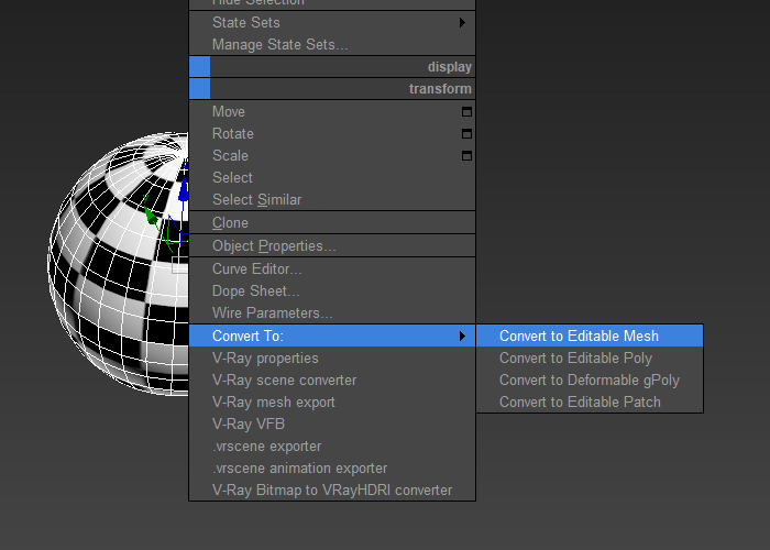 5)맵핑좌표가 존재하는 오브젝트를 mesh 오브젝트로 변환합니다(convert to editable mesh)