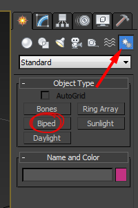 3)create 패널의 systems에서 바이패드(biped)를 선택합니다.