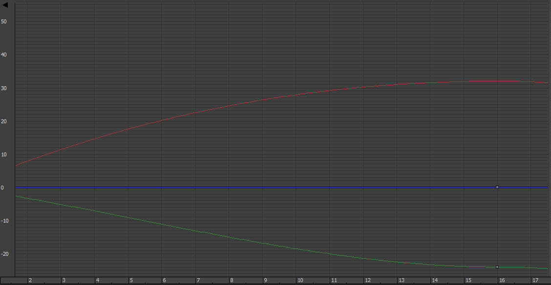 2)해당 오브젝트에 대해서 설정한 모든 키의 곡선 그래프를 확인할수있습니다. 가로 축은 프레임(time), 세로 축은 해당 속성에 대한 값(value)을 의미합니다.