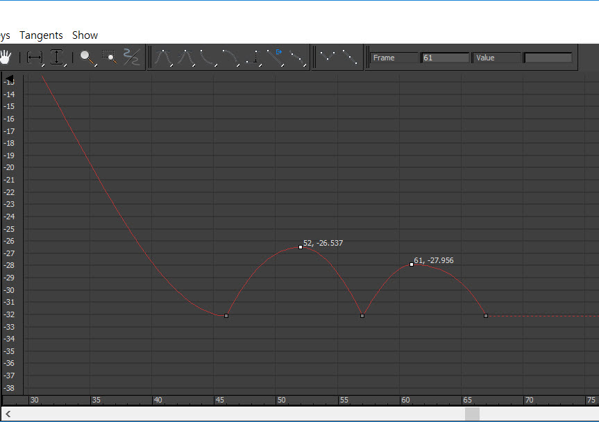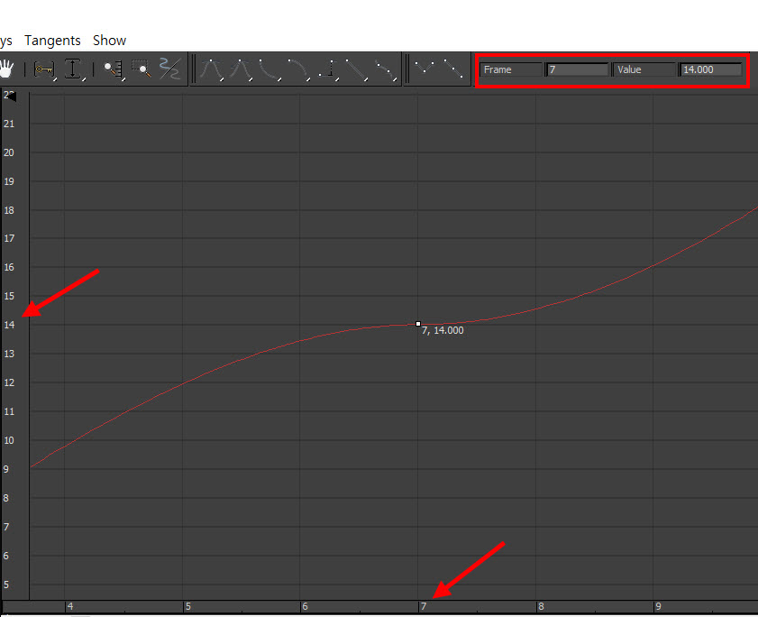 15)상단에서 직접 frame, value의 수를 입력하여 선택한 키의 프레임과 값을 수정할수있습니다.