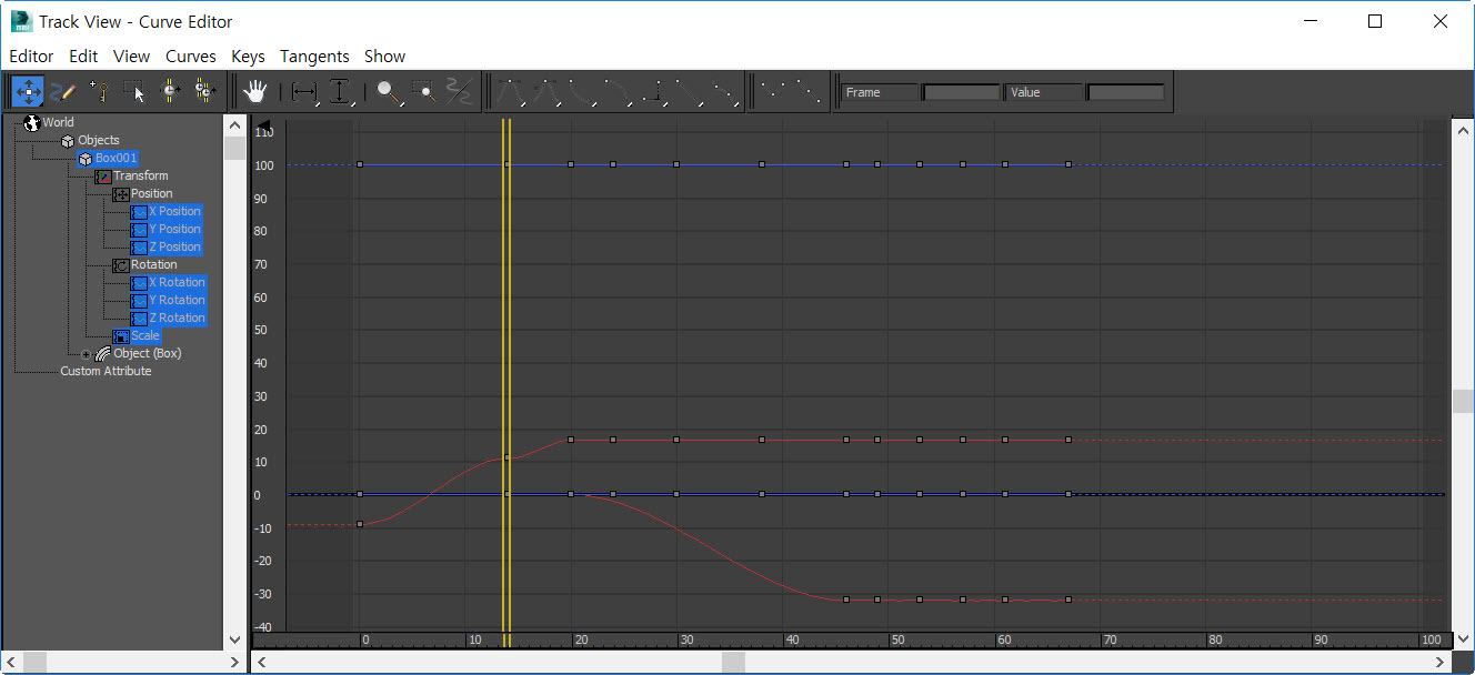 3D 맥스에서 애니메이션 커브 에디터(curve editor) 사용법