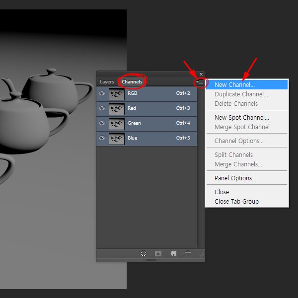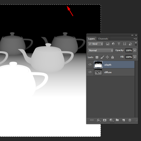 6)채널을 선택하고 복사한 깊이 맵 이미지를 붙여넣기합니다(ctrl+v)