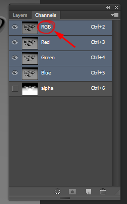 7)채널(alpha)을 선택 해제하고 상단의 RGB채널을 선택합니다.