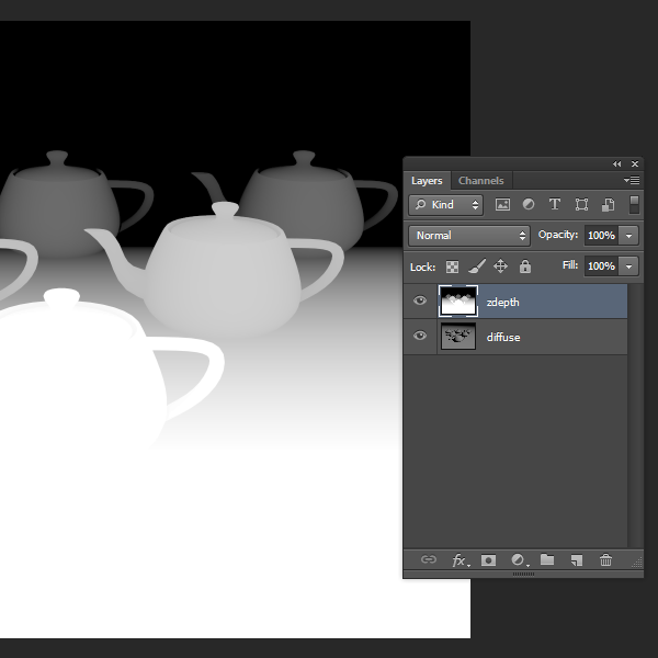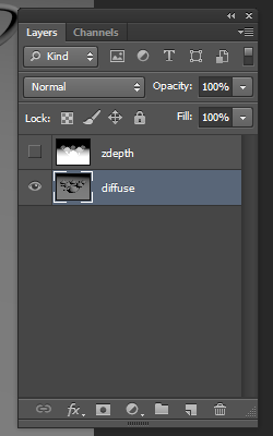 1)포토샵에서 아웃 포커싱 효과를 만들 이미지(diffuse)와 깊이 맵 이미지(zdepth)를 준비합니다.