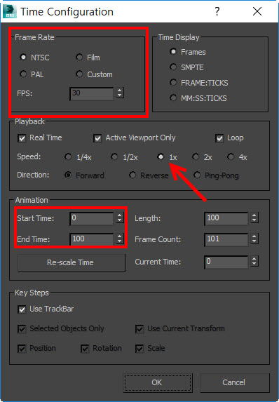 3D 맥스 애니메이션 키, 프레임 설정 기초 사용법