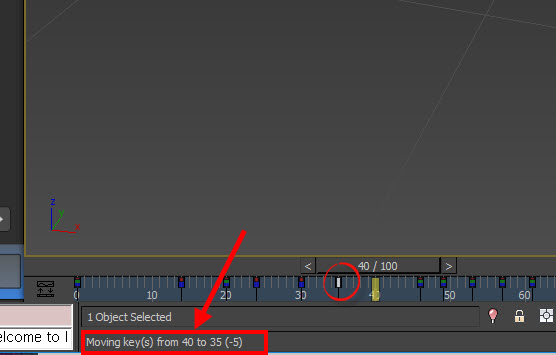 5)프레임에 추가한 키를 다른 프레임으로 이동시키려면 키를 선택하고 드래그해서 이동합니다. 타임라인의 하단에서 현재 프레임과 목표 프레임을 확인할수있습니다.
