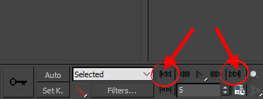 11)go to start, go to end 버튼을 클릭하면 전체 프레임 범위의 시작 및 끝 프레임으로 이동합니다. 단축키는 home 그리고end를 사용합니다.