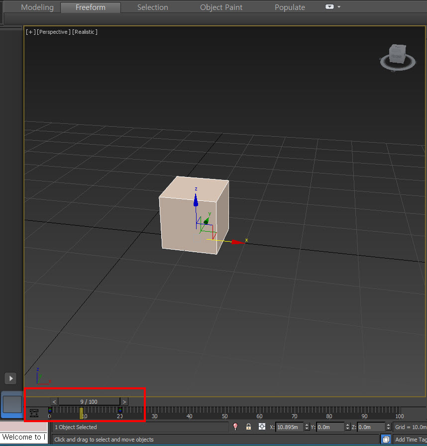 3)타임 슬라이더를 이동해서 프레임을 선택하고 해당 프레임에 키를 설정할수있습니다.