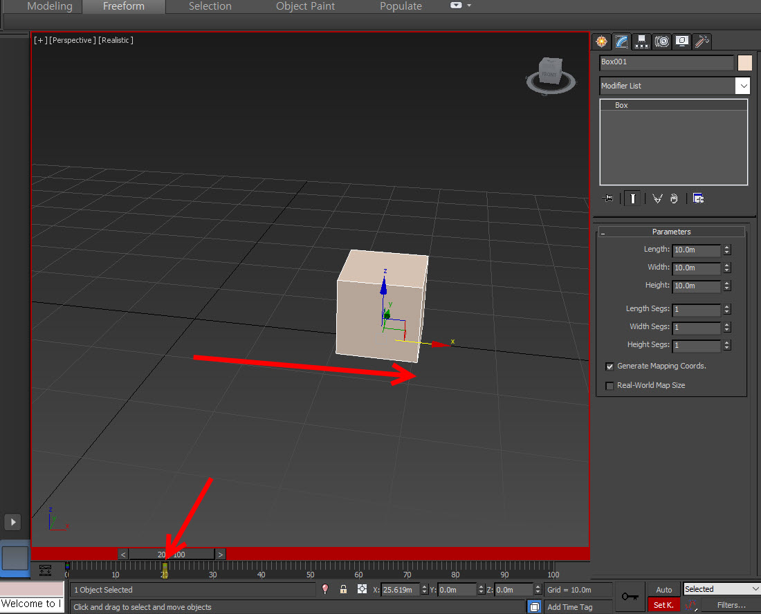 2)키 모드를 활성화하면 타임 슬라이더 영역, 뷰포트 프레임, 키 모드 버튼을 빨강으로 표시합니다. 이것은 해당 오브젝트에 키를 설정할 준비가 되었다는것을 의미합니다.
