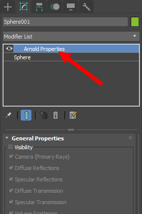 2)matte로 사용할 오브젝트를 선택하고 arnold properties 수정자를 추가합니다.