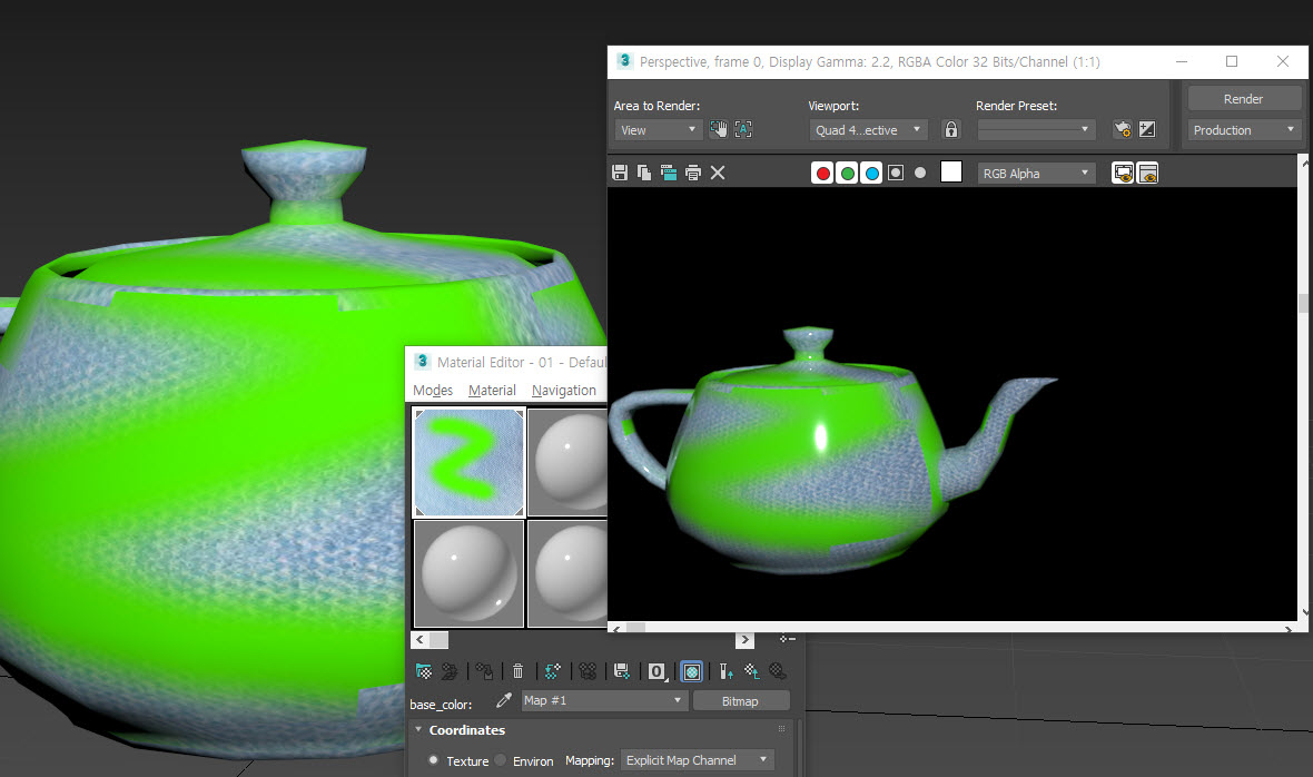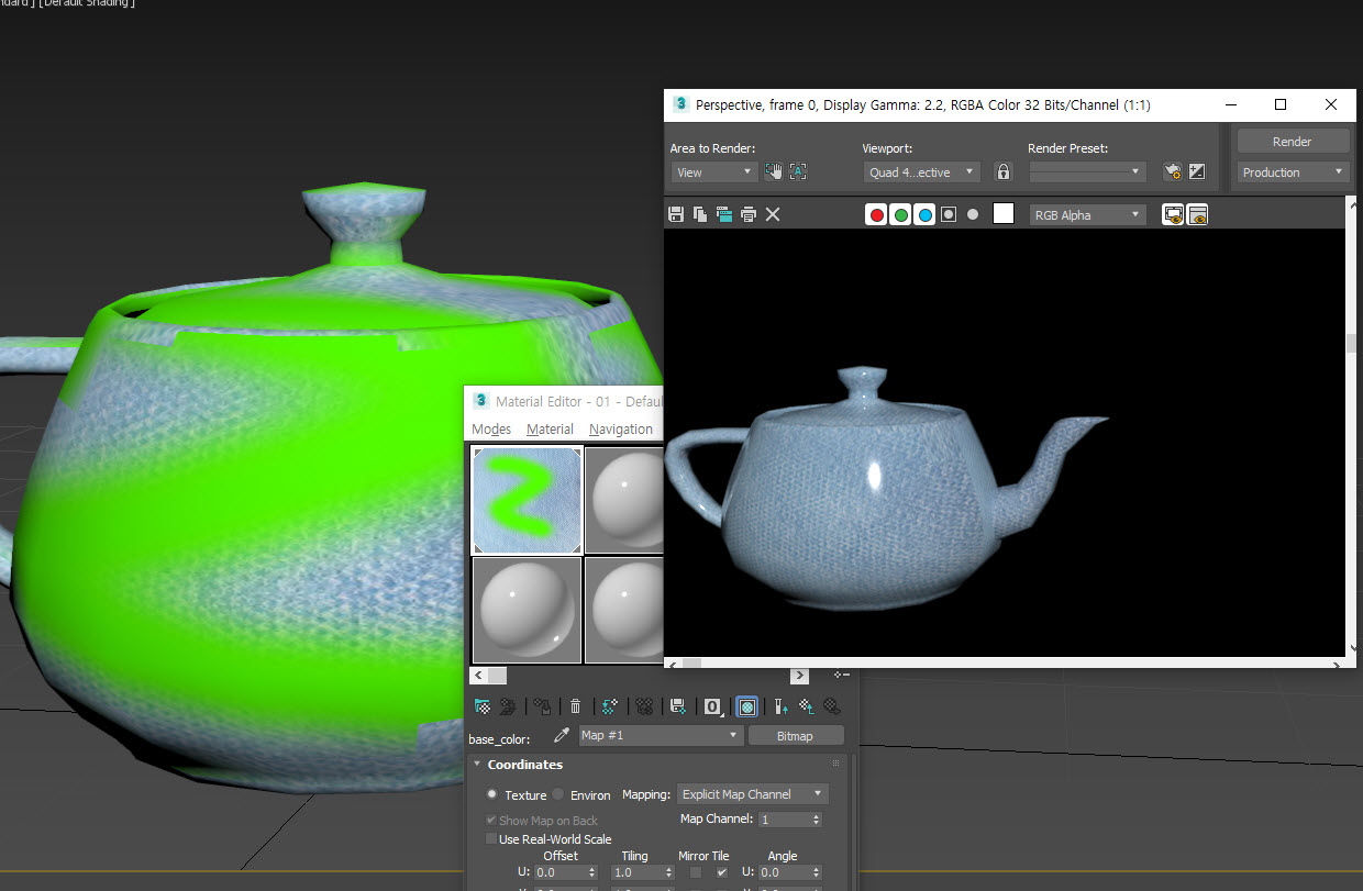2)수정한 텍스처가 뷰포트에서 반영되지만 렌더링한 이미지에서 반영되지않는것을 확인할수있습니다.