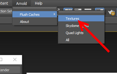 3)상단의 arnold 메뉴에서 flush caches의 textures를 선택합니다.
