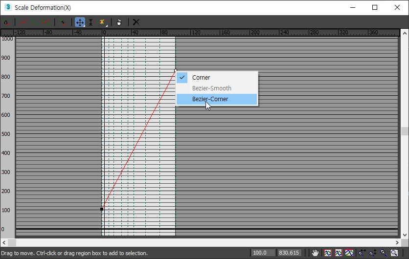 10)포인트를 선택하고 우클릭 메뉴에서 bezier - corner를 선택합니다.